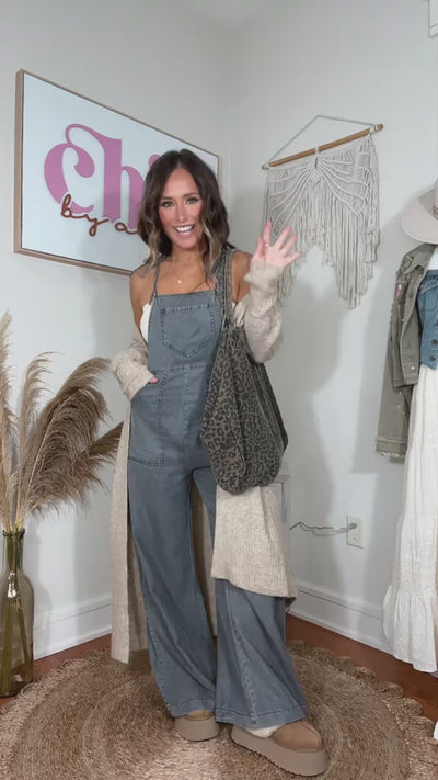 Front Pocket Wide Leg Overall Jumpsuit with Side Zipper Closure and Adjustable Shoulder Ties